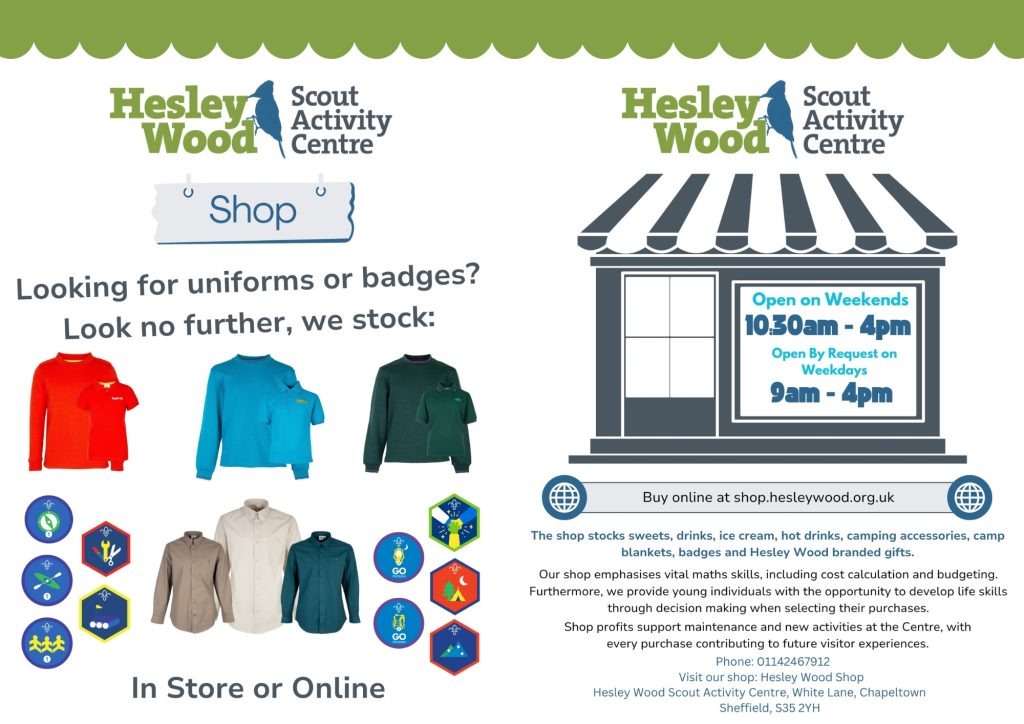 We can be contacted by email scout.shop@hesleywood.org.uk or by telephone 0114 246 7912